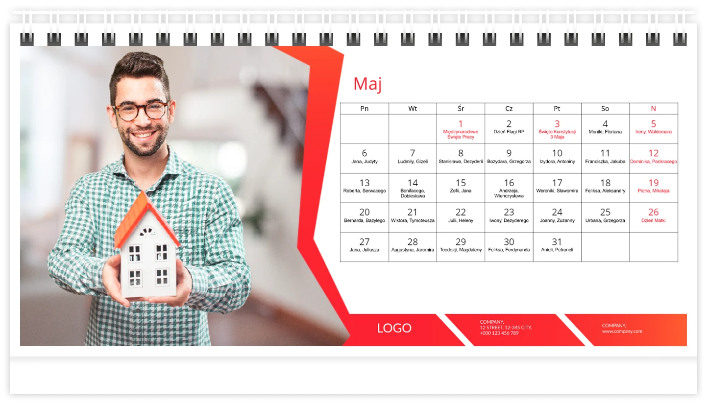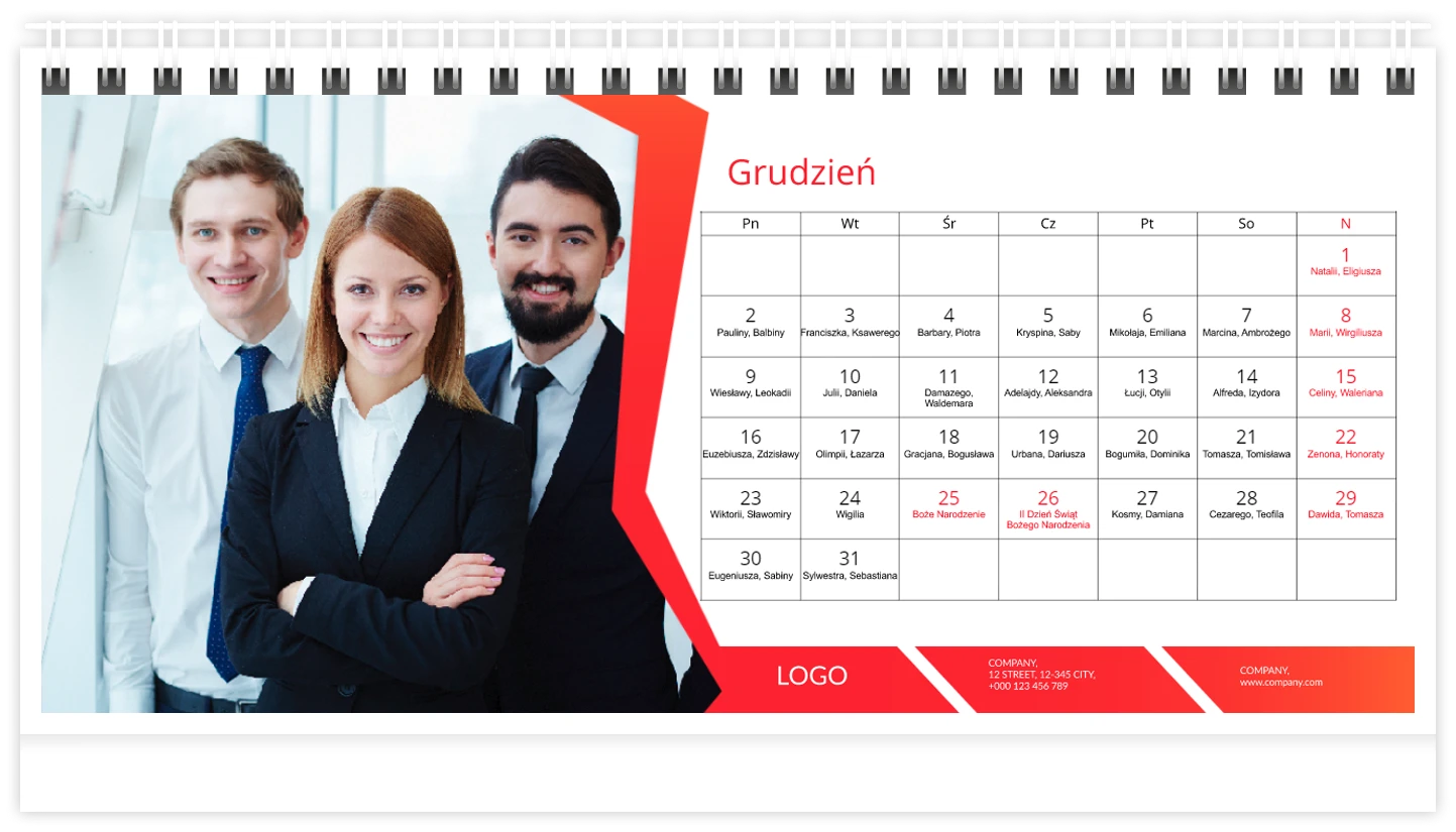 Całkowity koszt kalendarza jest różny w zależności od jego wielkości. Dokładną kwotę znajdziesz w zakładce Realizacja i dostawa.