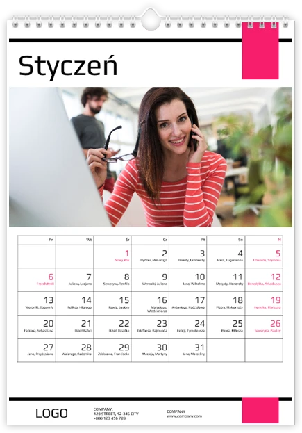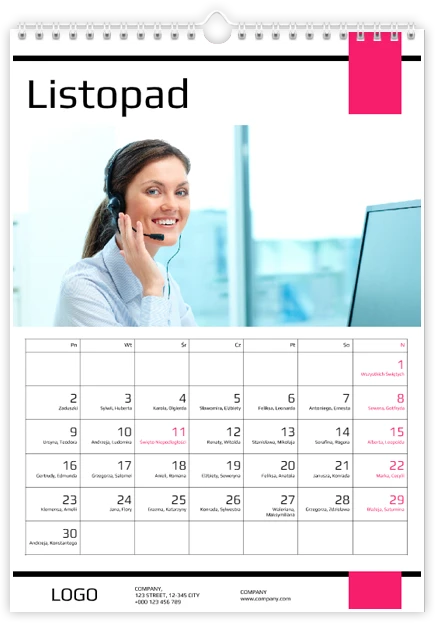 Całkowity koszt kalendarza jest różny w zależności od jego wielkości. Dokładną kwotę znajdziesz w zakładce Realizacja i dostawa.