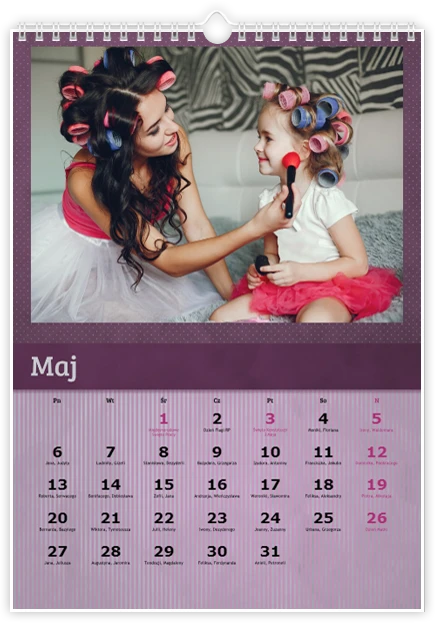 W kreatorze online całkowicie za darmo już w kilka chwil zaprojektujesz swój własny kalendarz. Możesz to zrobić zarówno od zera, jak i z pomocą gotowych szablonów.