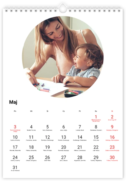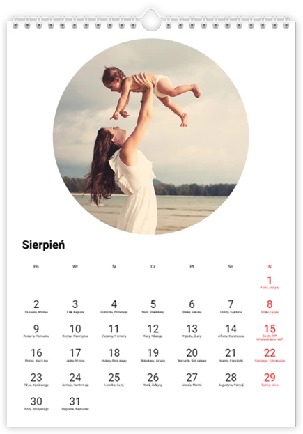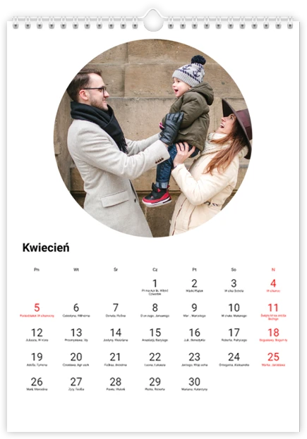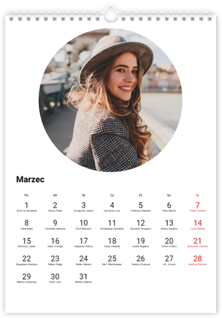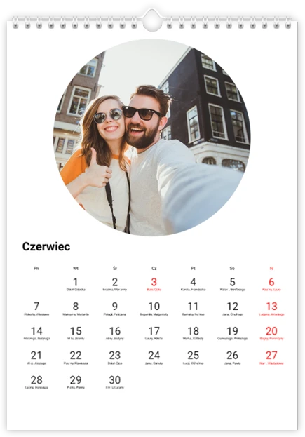 Całkowity koszt kalendarza jest różny w zależności od jego wielkości. Dokładną kwotę znajdziesz w zakładce Realizacja i dostawa.