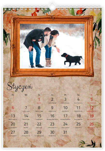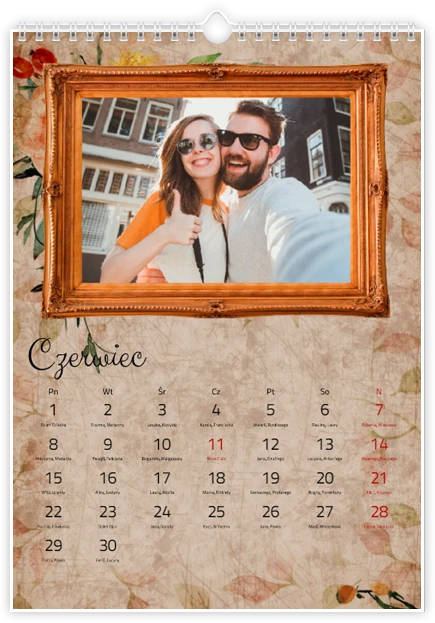 Całkowity koszt kalendarza jest różny w zależności od jego wielkości. Dokładną kwotę znajdziesz w zakładce Realizacja i dostawa.