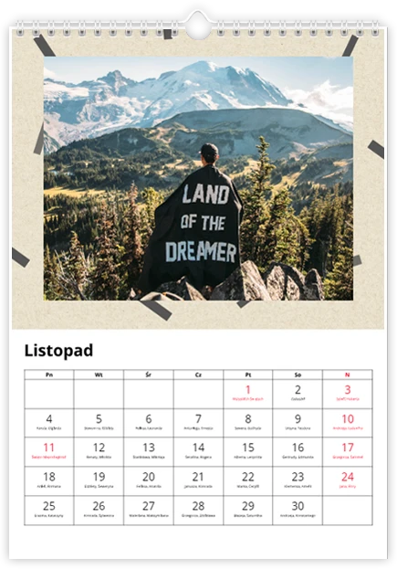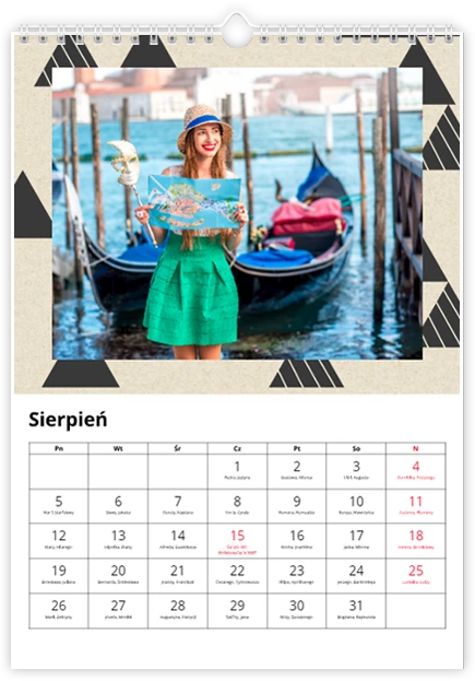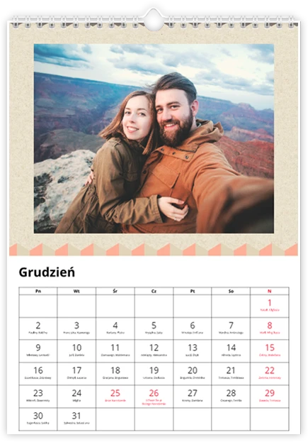 Całkowity koszt kalendarza jest różny w zależności od jego wielkości. Dokładną kwotę znajdziesz w zakładce Realizacja i dostawa.