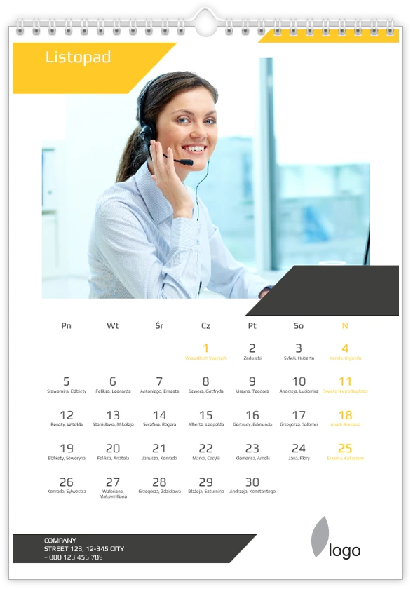 Całkowity koszt kalendarza jest różny w zależności od jego wielkości. Dokładną kwotę znajdziesz w zakładce Realizacja i dostawa.
