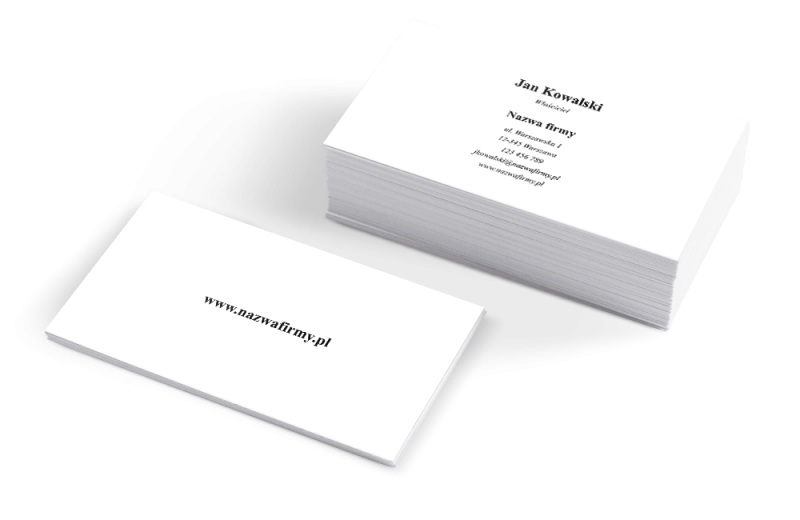 Jeśli chodzi o papier, wizytówki są drukowane na wysokiej jakości papierze kredowym o gramaturze 300 g, co zapewnia im solidność i trwałość. Dodatkowo, dostępna jest opcja zwiększenia gramatury papieru do 350 g, co może dodać wizytówce jeszcze większej elegancji i luksusowego wyglądu. Taki papier nie tylko dobrze się prezentuje, ale również daje wrażenie solidności, co może mieć duże znaczenie w kontaktach biznesowych.