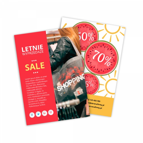 A5 to uniwersalny format ulotki — wystarczająco duży, żeby zmieścić wszystkie ważne informacje, a jednocześnie wygodny do rozdawania. Sprawdzi się w każdej branży.