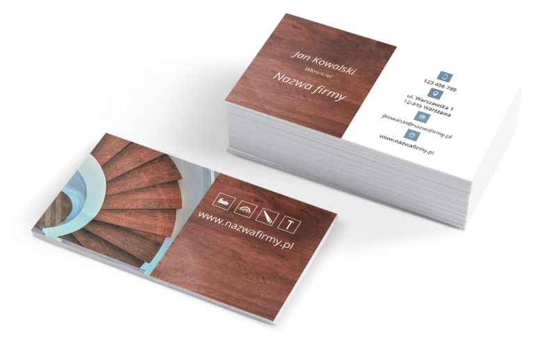 Klasyczne 90×50 mm albo 85×55 mm — bardziej kompaktowe i wygodne na co dzień. Obie opcje są sprawdzone i dobrze wyglądają w każdej branży. Różnica? Ty wybierasz, co wygodniejsze dla Ciebie i Twoich klientów.