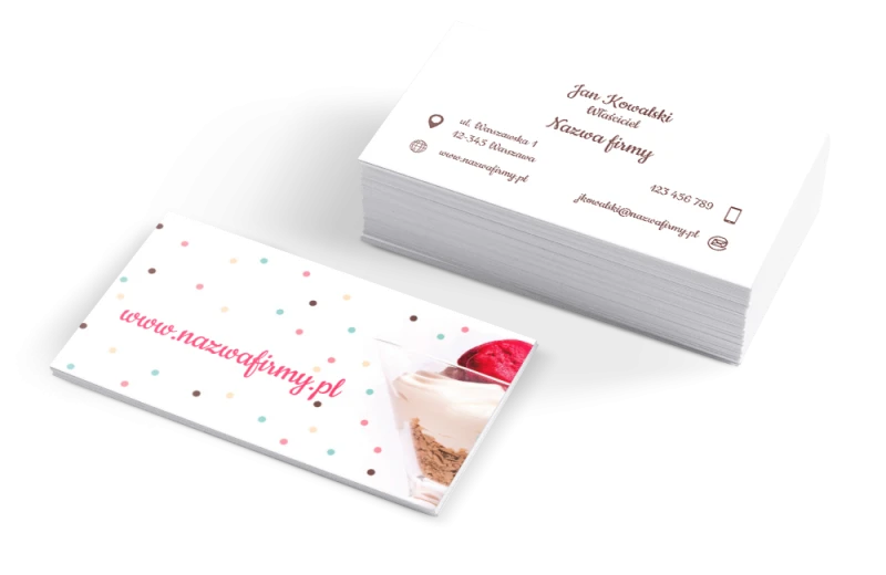 • wizytówki dwustronne – więcej miejsca na ofertę, grafikę lub slogan.