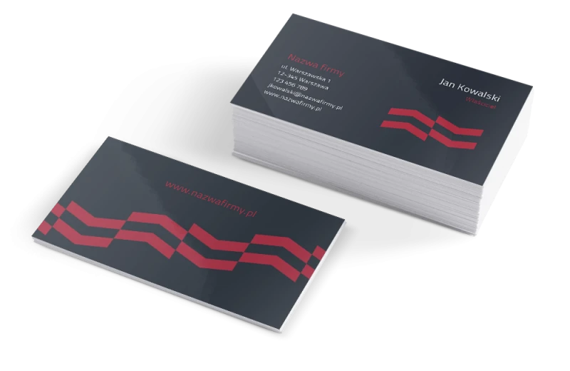 Kontrast czerwieni i czerni nadaje wizytówce zdecydowanego, profesjonalnego charakteru, a uporządkowany układ danych ułatwia szybkie odnalezienie najważniejszych informacji kontaktowych. Taki styl dobrze pasuje do firm usługowych, przedsiębiorców, konsultantów czy specjalistów pracujących bezpośrednio z klientami. Geometryczna forma porządkuje przestrzeń projektu, dzięki czemu wizytówka pozostaje czytelna, nowoczesna i łatwa do zapamiętania.