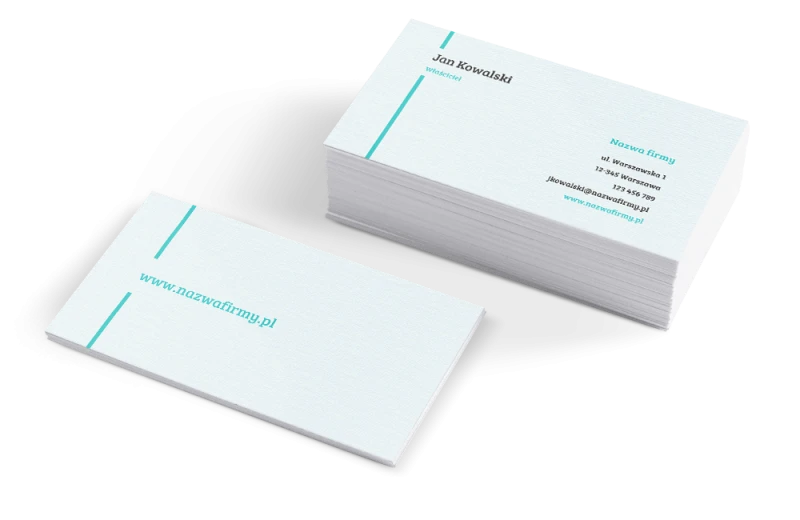 Klasyczne 90×50 mm albo 85×55 mm — bardziej kompaktowe i wygodne na co dzień. Obie opcje są sprawdzone i dobrze wyglądają w każdej branży. Różnica? Ty wybierasz, co wygodniejsze dla Ciebie i Twoich klientów.