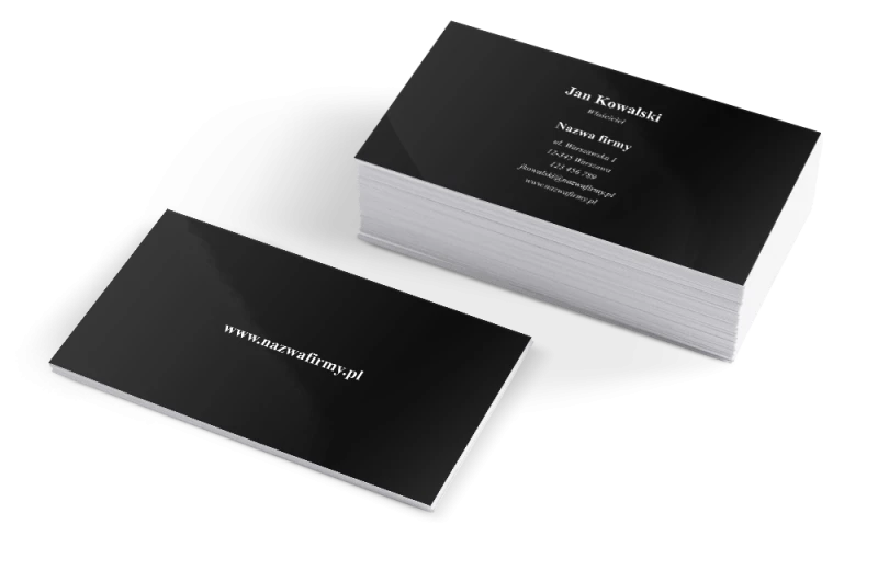 Wizytówka na papierze 300 g/m² pokryta błyszczącym laminatem, który odbija światło i podbija nasycenie kolorów. Powierzchnia jest gładka, bardziej odporna na zabrudzenia i zapewnia dłuższą żywotność.