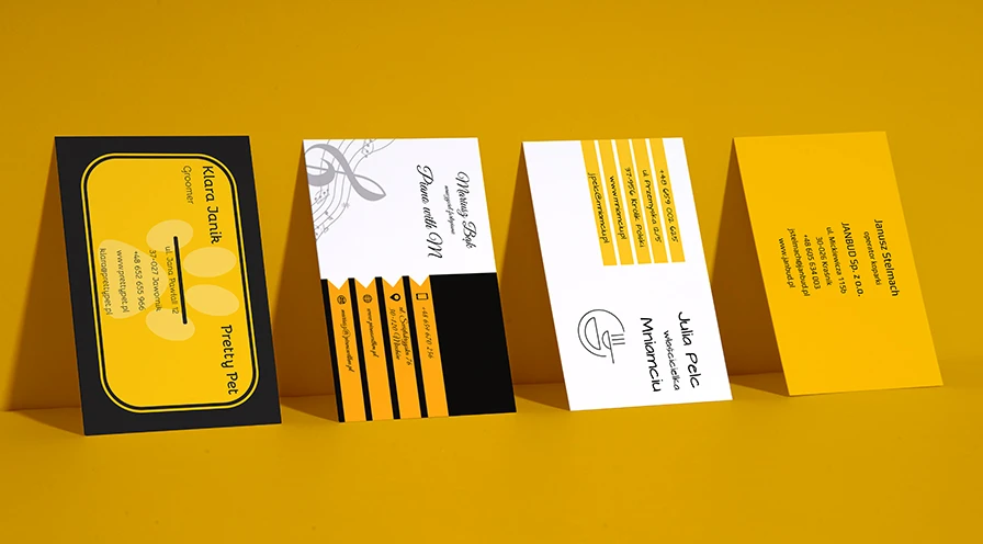 Laminat wpływa na wygląd i odczucie wizytówki w dłoni. Możesz dobrać do projektu matowe lub błyszczące wykończenie — każde z nich inaczej podkreśla kolory i detale.