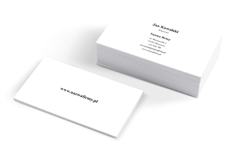 Klasyczna wizytówka na papierze 300 g/m², bez dodatkowego wykończenia. Naturalna powierzchnia nie zbiera odcisków palców i dobrze sprawdza się w prostych, minimalistycznych projektach.